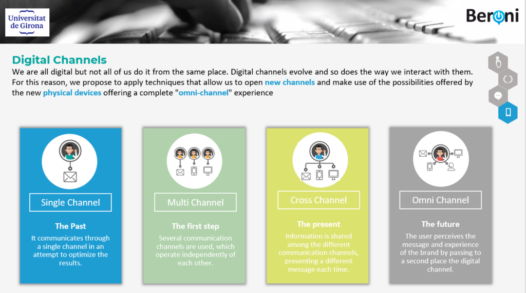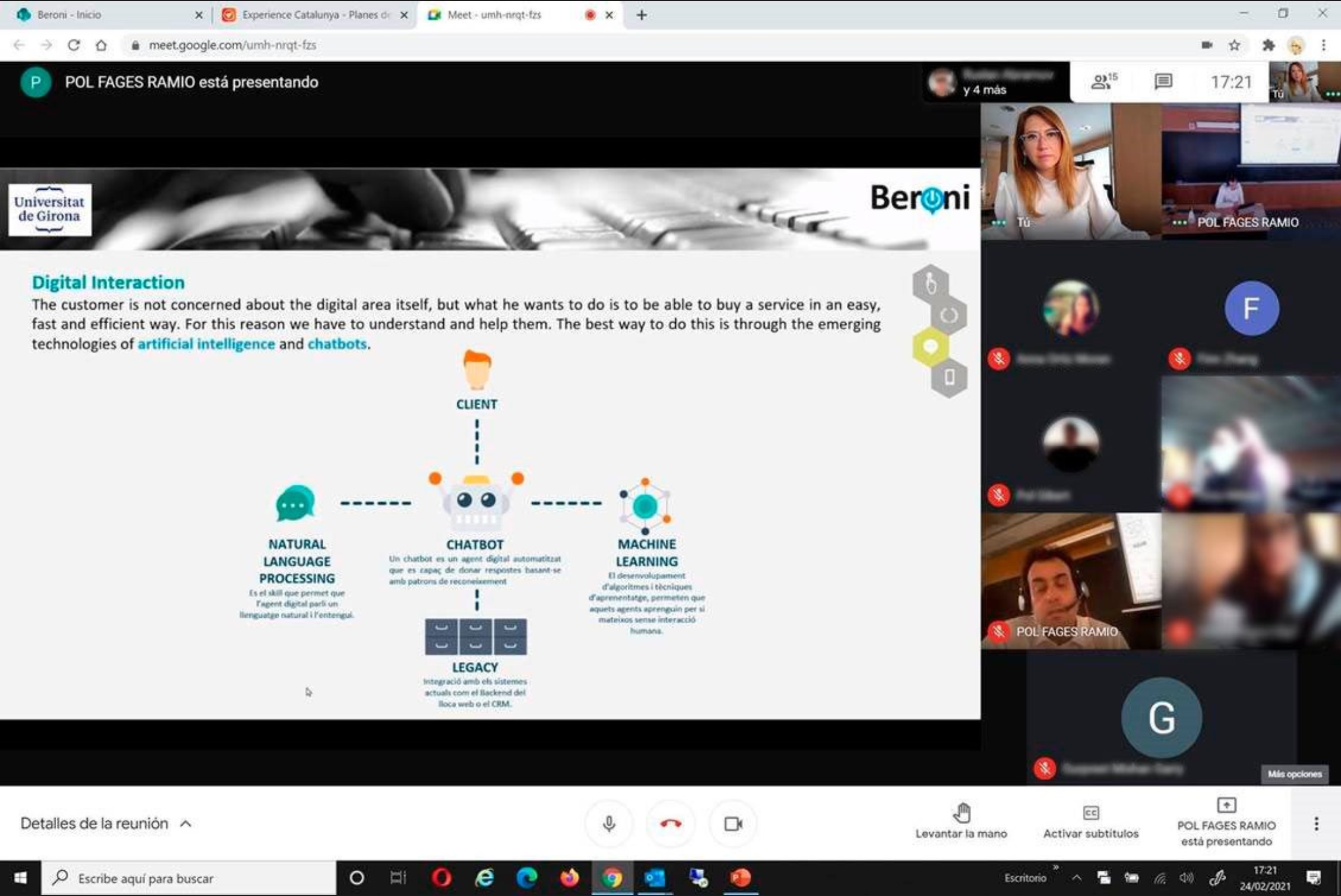 Finalmente, analizamos con los alumnos el caso de éxito de Experience Catalunya , el marketplace desarrollado con la tecnología Enjoy Experience, de Beroni para la Agència Catalana de Turisme. Un proyecto Saas desarrollado por Beroni hace cinco años y al que recientemente hemos aplicado nuevas mejoras gracias a la incorporación de soluciones tecnológicas de vanguardia, un rediseño completo del look and feel centrado en el nuevo cliente digital, y una integración con el CRM.  Conseguimos así un marketplace atractivo y siempre actualizado con las últimas novedades tecnológicas al servicio de la empresa y del cliente.