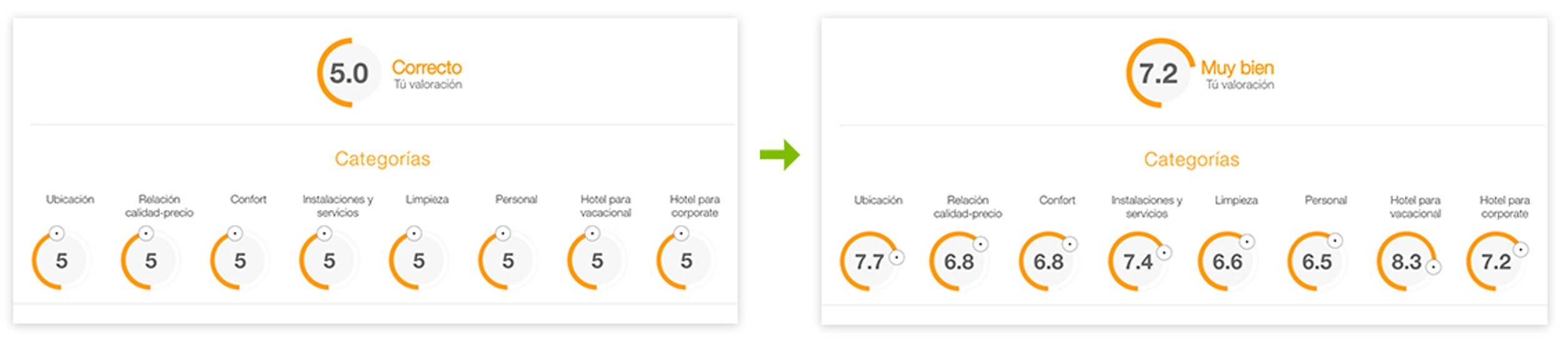 Valora el hotel: Accede a la valoración del hotel que quieras y deja tus valoraciones clicando en el botón  .  A continuación podrás valorar diferentes aspectos del hotel y obtener tu valoración global.