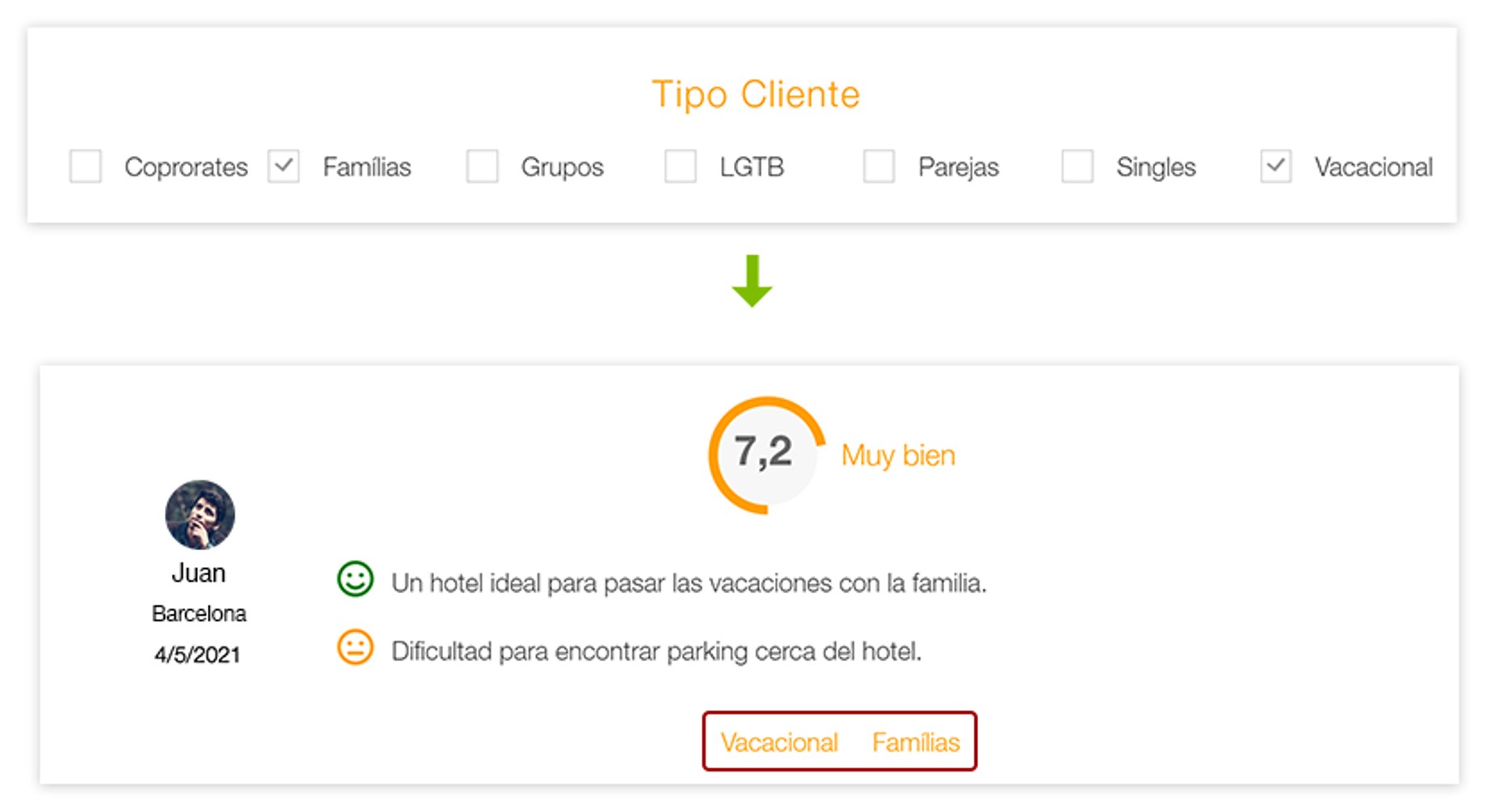 Categoriza cada hotel: También puedes indicar a otros agentes el tipo de cliente ideal para el hotel que estás valorando. Con esta opción el agente de viajes puede recomendar al viajero el hotel que mejor se adapte a su perfil de viaje o requisitos en su estancia.